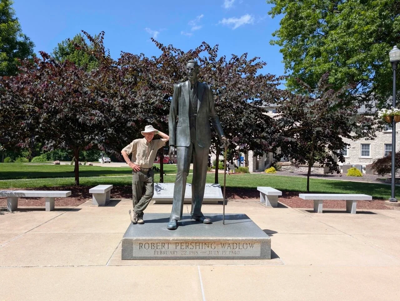 You have to be this tall to lean on a statue of Robert Pershing Wadlow, world's tallest man, Alton. Photo Credit: Gary Crallé.